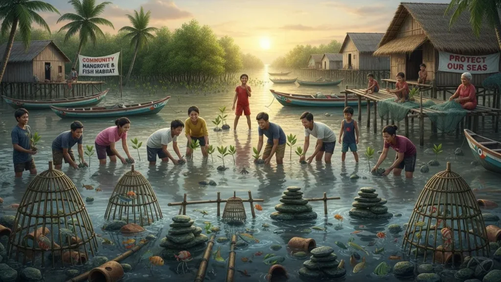 3. Philippines – Community-Based Coastal Resource Management: Villagers in Panay Island restored mangroves through participatory mapping, increasing fish catch and community income by 60%.